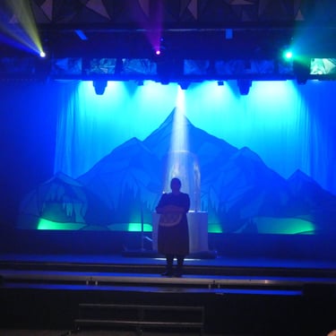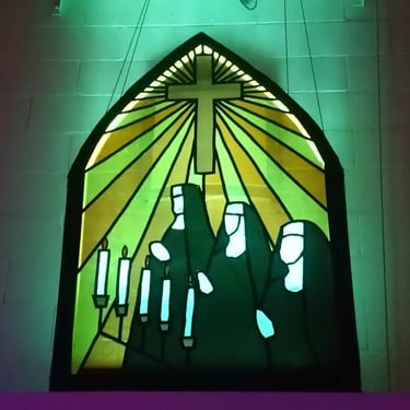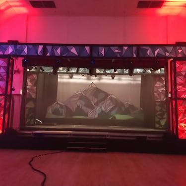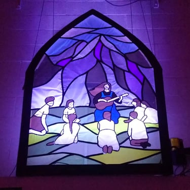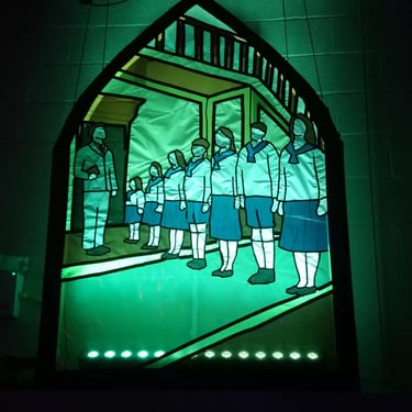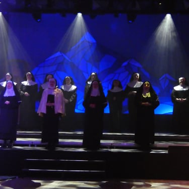 ”...a Spring 2024 production of the Rodgers and Hammerstein’s classic, staged by VAMPS of St Neots, Cambridgeshire, presented audiences with a beautiful new dimension that they will likely remember for a long time. Through the clever artistry and handiwork of deputy stage manager and set designer, the large, but plain, performance hall at St Neots’ Priory Centre, a former Benedictine monastery, recaptured vestiges of a place of worship: Natalie crafted six mock ‘stained glass’ windows to hang high on the hall’s side walls. Each colourfully depicted a different scene from the show, such as the novice Maria’s joyous day in the hills, Captain von Trapp’s military-style review of his children, nuns deep in prayer by candlelight and Maria entertaining the young von Trapp's with her guitar, to name a few.”